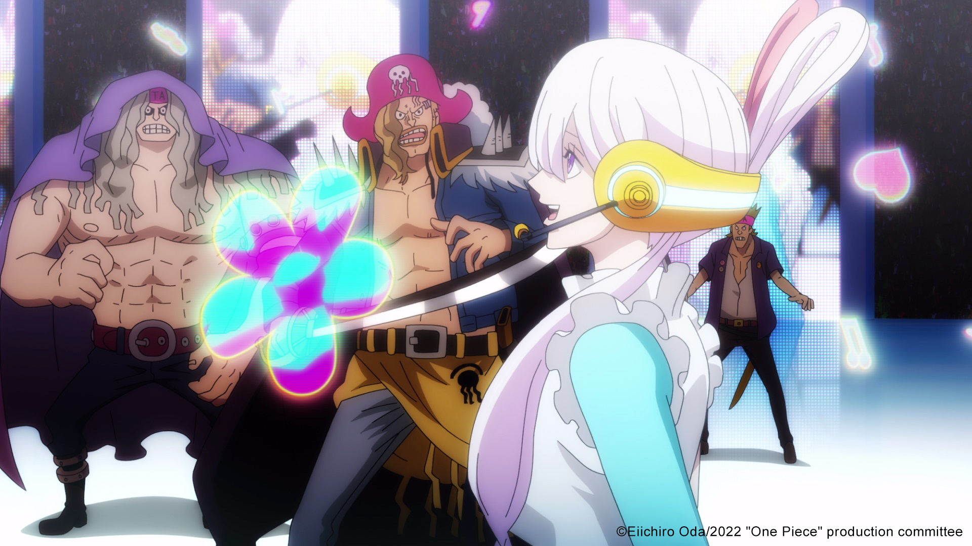 演員:田中真弓(魯夫)、名塚佳織、Ado(歌唱部分)(美音)、岡村明美(娜美)、中井和哉(索隆)、山口勝平(騙人布)、平田廣明(香吉士)、大谷育江(喬巴)、山口由里子(羅賓)、矢尾一樹(佛朗基)
