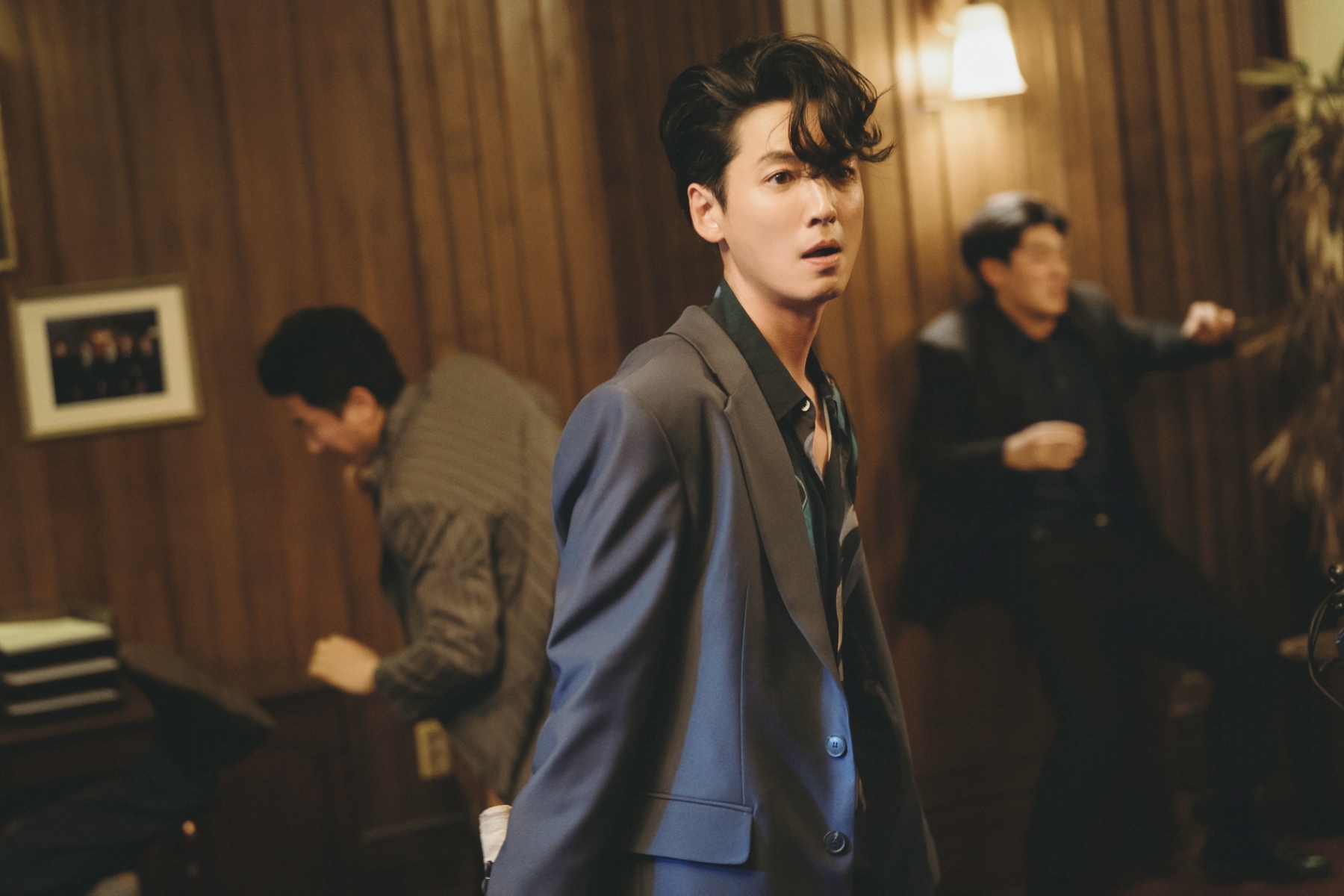 別出心裁的黑幫動作喜劇《誰想當老大》,講述黑幫老大突然逝世,組織裡的兩位二把手因此成為繼任的理想人選。然而,一個拒絕當老大,夢想成為中華料理主廚,一個則夢想成為探戈舞者,兩人因此展開一場「不想當老大」的激烈較量,而鄭敬淏便在片中飾演已經是黑幫合法繼承人,卻因為沉迷探戈,以至於要擺脫當老大的「強表」。鄭敬淏這回也將成為全片的「視覺擔當」,以他獨特的傲嬌魅力、時尚品味,以及超出預期的舞蹈實力,展現全新面貌與精緻的喜劇感。當被問到片中的西裝造型時,他靦腆笑稱:「只要穿上西裝,任誰看起來都會很帥吧。」接著又表示:「其實我對西裝版型很挑剔,試穿了很多次,特別是在跳探戈的時候更是如此。不僅是整體的合身度,就連跳舞時若隱若現露出的手部線條也要好看,為此我還特地加上刺青造型,為的就是要讓角色在視覺上更具說服力,我對此煞費不少苦心。」